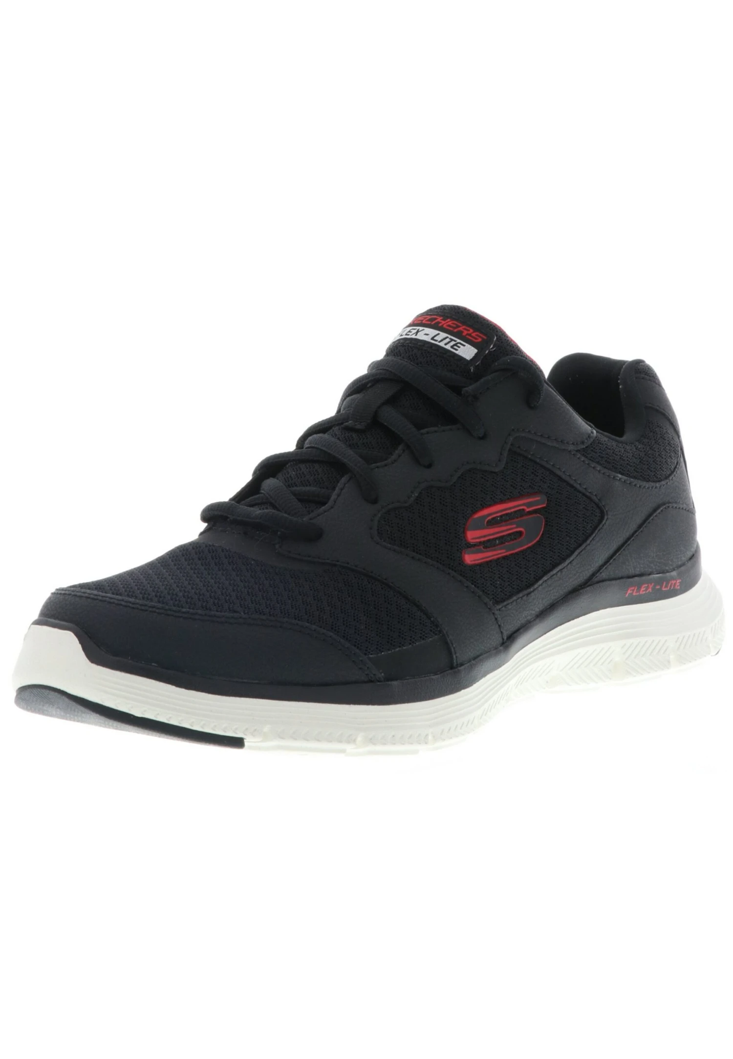 Sneakers Laag – Black Leather/Mesh/Pu/Red Trim